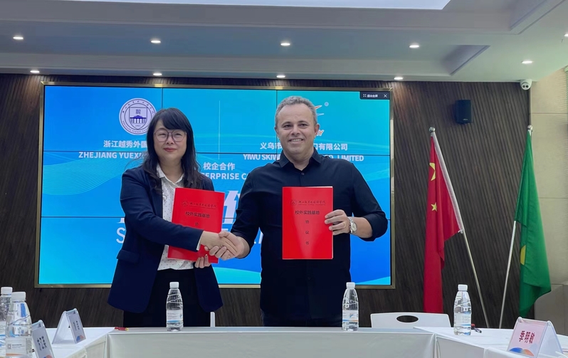 陆海萍对公司热情接待表示衷心的感谢,并详细介绍了学校发发展历程、办学规模、专业建设等情况,特别在葡萄牙语人才培养方面取得的成绩。陆海萍与Fabio先生代表两家签署了校外实习实训基地协议。