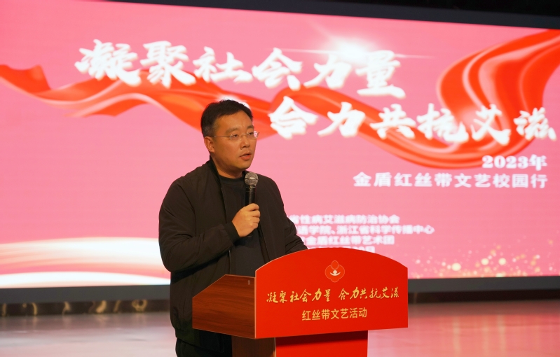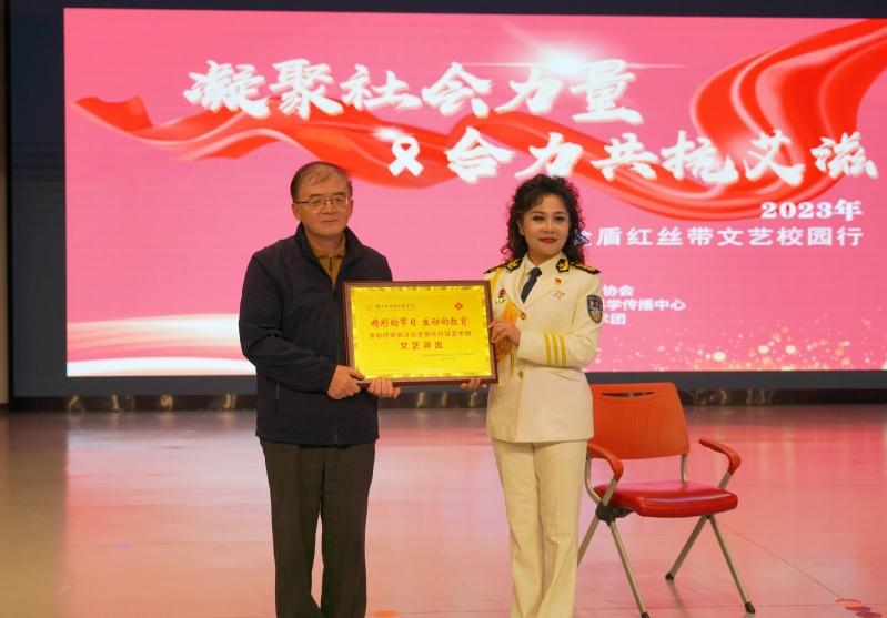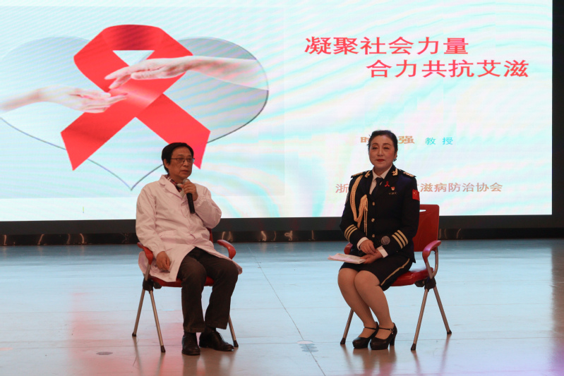 在第36个“艾滋病日”即将到来之际,为了普及艾滋病预防知识,切实加强师生对预防、抗击艾滋病重要意义的认识。11月30日下午,由学校关工委与浙江省性病艾滋病防治协会、浙江越秀外国语学院、浙江省科学传播中心、浙江省金盾红丝带艺术团共同主办的“凝聚社会力量,合力共抗艾滋”专题文艺汇演在我校镜湖剧场举行。