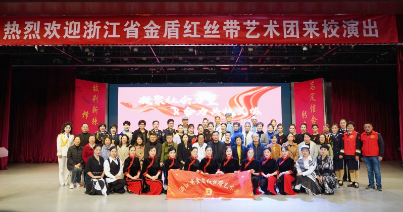 浙江省金盾红丝带艺术团是一支以司法、公安退休干警为主体,有艺术专长的省市机关企事业单位爱心人士组成的公益性文艺团体。他们长期活跃在高校、社区和企事业单位等基层一线,开展了大量的公益演出活动。师生们对艺术团老师们精湛的演出水平和乐意为社会奉献的公益行为深表敬佩。
