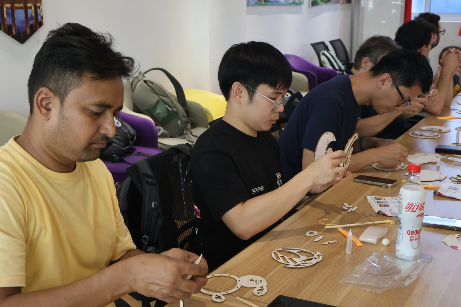 外教们在通过PPT和视频了解了中秋节的起源、文化内涵和传统习俗之后开始开始制作中秋花灯。从拼接骨架、粘贴灯面到装饰流苏,外教们手持材料一步步摸索,大家频频交流心得。经过一番巧思与忙碌,一盏盏造型别致的花灯相继成型,暖光透过灯面洒出,不少外教举起作品拍照留念,直言“要给家人get同款”。