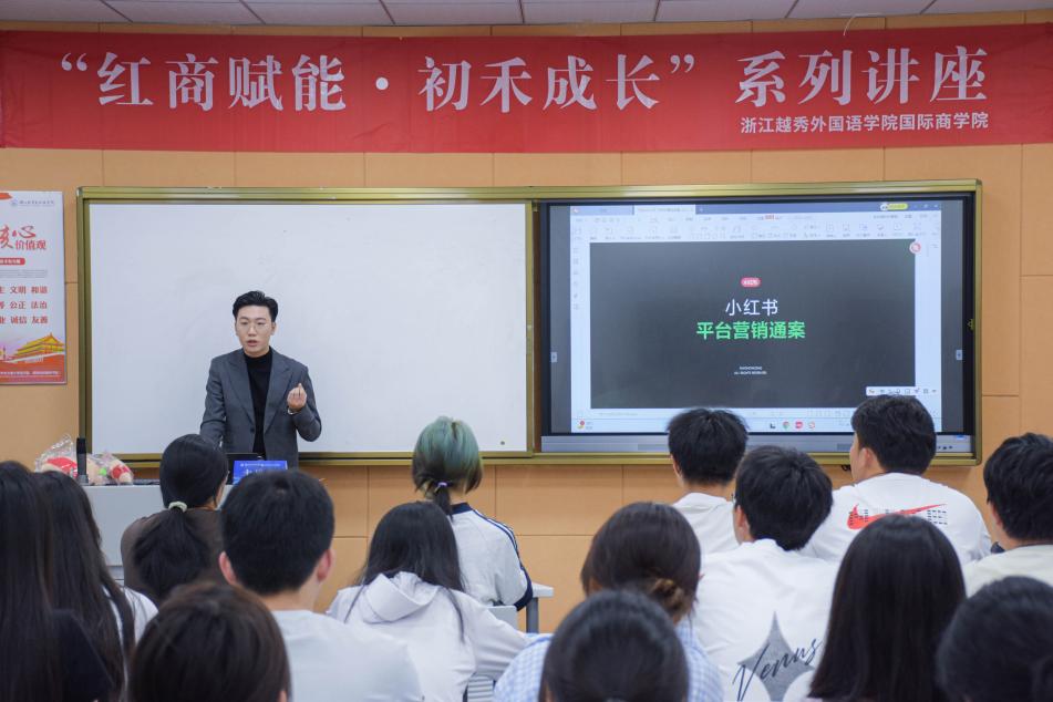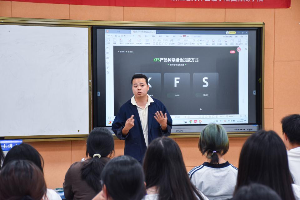 本期讲座主要讲解如何拆解平台生态3大核心价值,手把手教“好”笔记创作逻辑。分享流量获取三步法,破解“小眼睛太少”难题,以及新手必学的起号与内容思路全解析。讲座率先由讲师团队吴柏逸老师发言,介绍了相关项目的落地以及与小红书合作的初衷,突出强调搭建赋能平台,通过校企合作放大学生的营销价值,帮助他们在未来社会中有更多自主选择的机会。接着,小红书武汉团队商务经理余子城老师主讲平台运营知识,解说平台优势点,并分享学校学员徐昊线上运营服饰店铺的成功案例。最后,小红书内容运营负责人杨洋老师提出观点,要打造小红书爆款推文,封面标题是关键,还需结合有效引导转换。