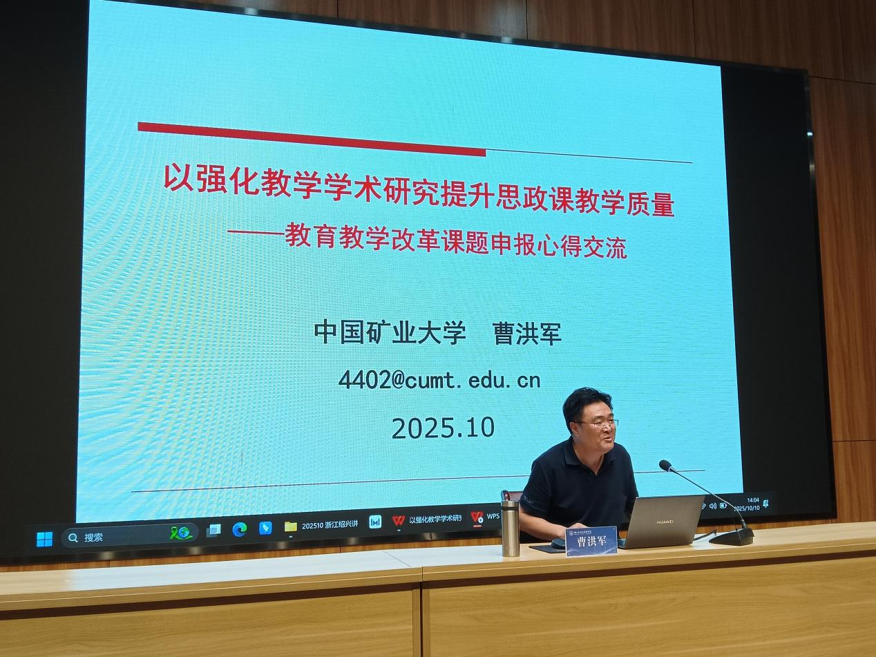学院以“求真论坛”为载体,于10月10日下午举办第二十二讲专题讲座,聚焦“教学学术研究与思政专项申报”核心主题。讲座特邀中国矿业大学马克思主义学院教授委员会主任、博士生导师曹洪军教授,围绕教学学术论文选题技巧、研究方法创新,以及思政类课题申报的政策解读、材料撰写要点等内容展开系统讲解。曹教授结合自身申报成功案例,拆解从选题策划到成果转化的全流程,为新教师科研起步提供清晰指引。