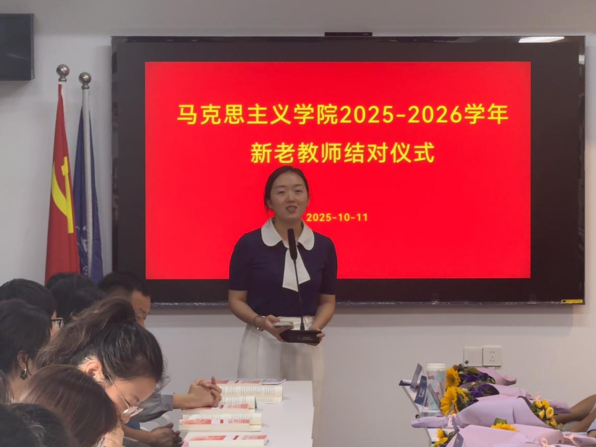 仪式上,导师代表卢传斌老师以三组饱含情怀的 “欢迎” 展开寄语。他首先欢迎新教师来到水墨江南绍兴,感受这座城市的文化底蕴;随后欢迎他们加入越秀大家庭,依托学校优质平台实现教学相长;最后欢迎大家扎根马克思主义学院,共同投身培根铸魂的育人事业。鼓励新教师坚守教育初心,与老教师携手并肩,在思政教育领域深耕细作,共同谱写新时代思政教育的崭新篇章。