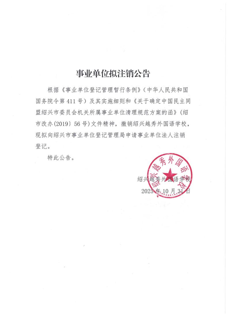 事业单位拟注销公告