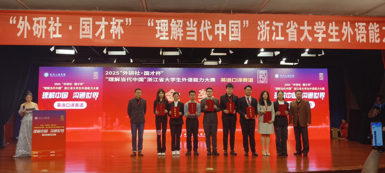 10月31日,2025年“理解当代中国”浙江省大学生外语能力大赛口译赛道省赛在宁波工程学院落幕。我校英语学院翻译专业宋锦涛同学斩获金奖第一名、决赛一等奖,并成功晋级国赛。