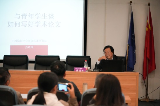 10月31日下午,网络传播学院第45期“越州新闻传播大讲堂之稽山名师讲坛”在4-301会议室顺利举行。本次讲坛特邀二级编审、人民出版社原副总编辑、中国编辑学会副会长兼秘书长乔还田担任主讲嘉宾,为现场师生带来一场以“与青年学生谈如何写好学术论文”为主题的精彩讲座。