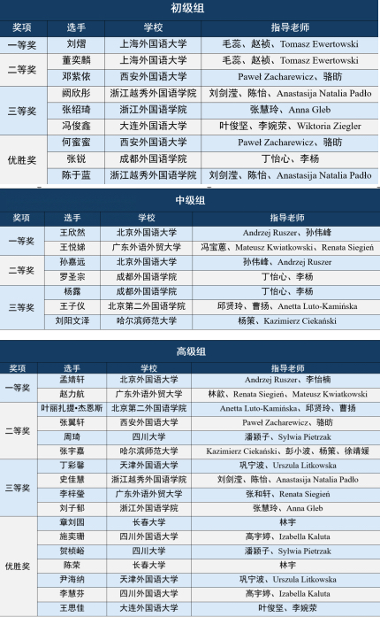 我校波兰语专业选派参赛的三名同学均取得优异成绩,具体获奖情况如下: