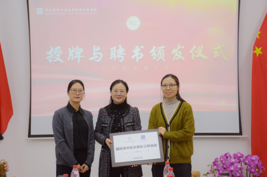 11 月12 日上午,国际商学院教授、博士、女教职工联谊会成立仪式在学院2-315 会议室隆重举行。学校工会主席杨钢、学校妇联主席兼酒店管理学院党委书记吴伟英、学校组织部副部长、人事处副处长郑红莲等相关部门领导莅临指导,学院院长李晓明教授、党委书记施文妹教授及全体副院长,三大联谊会会长、执行会长、教师代表和联谊会干事共同参会。仪式由学院党委副书记凌玮主持。