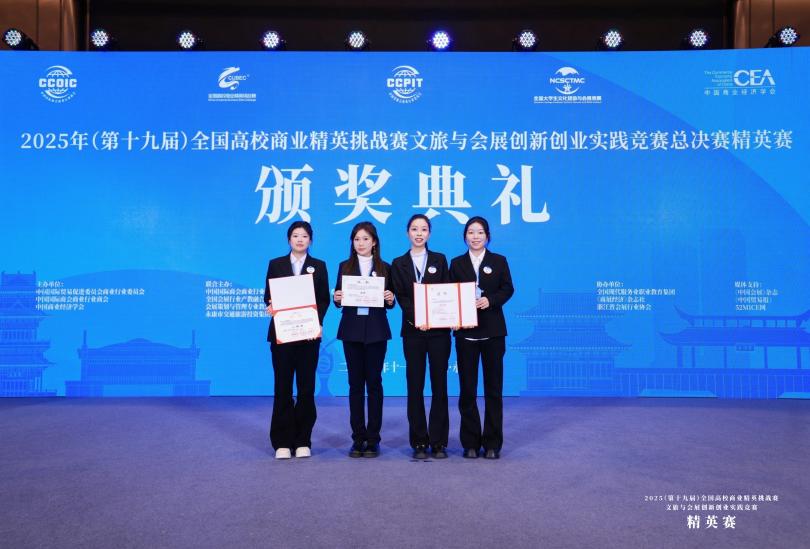 在刚刚落幕的2025年全国高校商业精英挑战赛文旅与会展创新创业实践竞赛全国总决赛中,我校“四叶漫话队”表现卓越,凭借作品《展会依恋与观众忠诚度关系调研报告——以中国国际动漫节为例》,从全国4788支队伍中脱颖而出,荣获会展项目调研赛项全国亚军,创下我校参与此项赛事以来的最佳成绩!