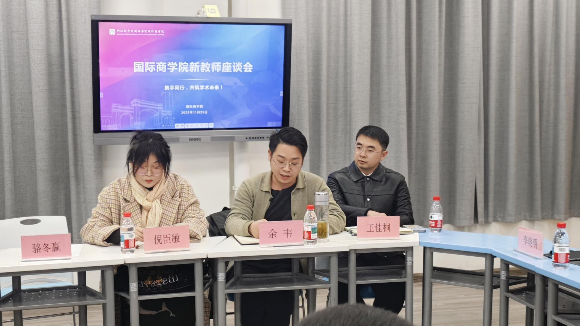 为助力新教师快速融入学院发展,搭建高效沟通平台,明确职业成长路径,2025年11月25日,浙江越秀外国语学院国际商学院在2-421智慧教室召开新教师座谈会。学院全体领导班子成员、各系部主任及全体新引进教师齐聚一堂,共话教育初心,共商发展大计。学院副院长王龙主持会议。