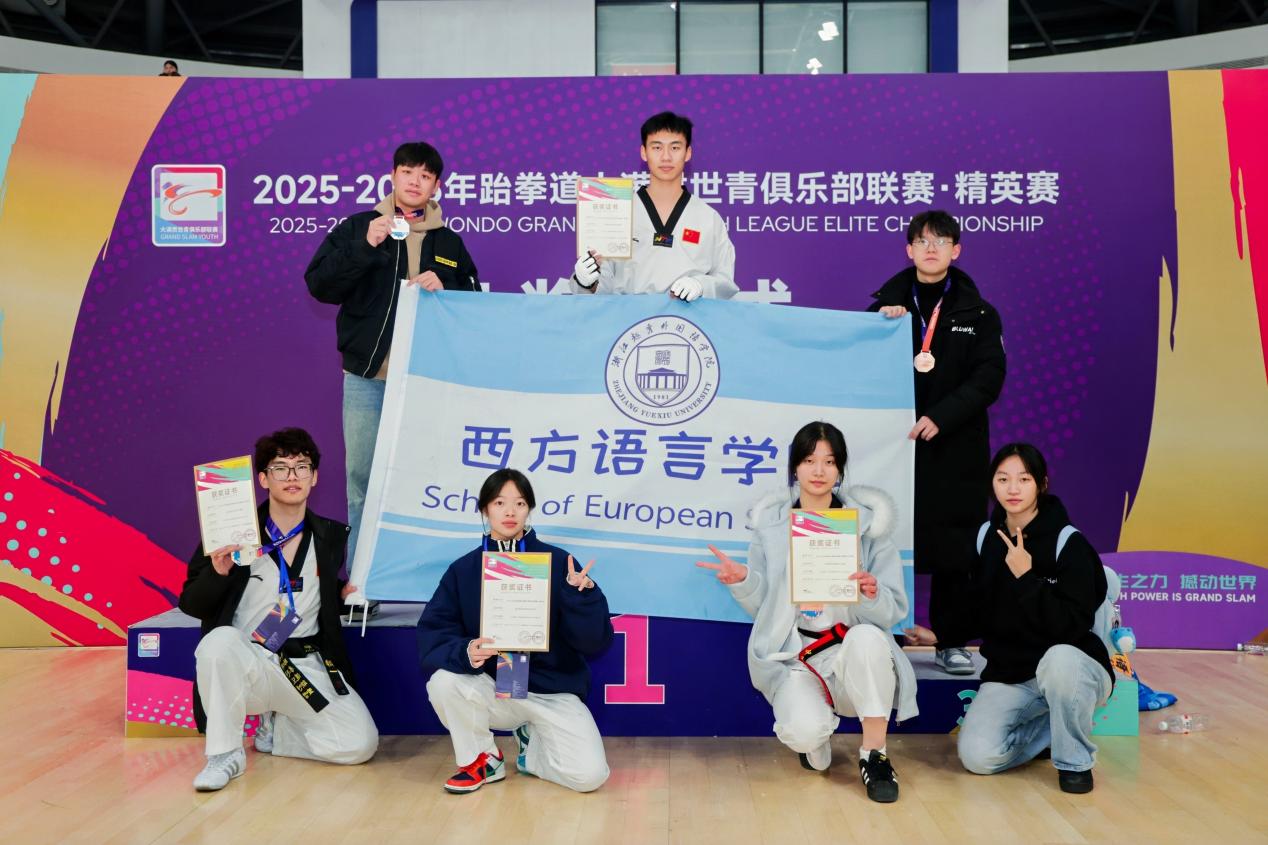 12月7日,为期两天(12月6日-7日)的2025-2026年跆拳道大满贯世青俱乐部联赛·精英赛在杭州钱塘圆满收官。来自全球6个国家116支队伍1600+的参赛选手汇聚杭州钱塘,在竞技舞台上演速度、力量与智慧的巅峰对决。我校西方语言学院晨曦跆拳道社社团成员在青年组和成年组男女子竞技项目中都取得了非常优异的成绩。