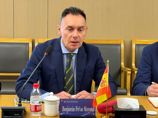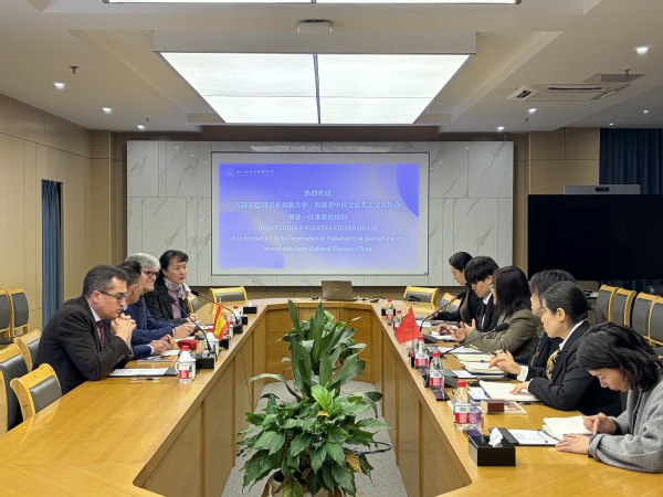 12月16日,西班牙巴利亚多利德大学副校长本杰明·佩尼亚斯·莫亚诺访问我校,巴利亚多利德大学医学院院长爱德华多·阿兰斯·桑斯、医学院副院长路易斯·科拉尔·古迪尼奥,西班牙中西文化艺术学校校长沈健陪同。校长雍和明会见来宾,双方就校际合作备忘录签署、双向教育交流合作、科研合作平台建设等议题进行了深入交流。副校长葛金玲、西方语言学院院长龚茜、留学生教育学院副院长王佳平、国际合作交流处副处长余玲、西方语言学院西班牙语系副主任彭璐娇参加会谈。