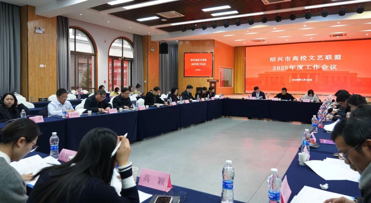 1月19日,绍兴市高校文艺联盟2025年度工作会议在浙江越秀外国语学院越秀厅举行,市委宣传部、市教育局、市文联相关领导及联盟理事会理事30余人参会。会议回顾总结了2025年联盟各成员单位的工作成绩,规划展望了2026年工作计划。