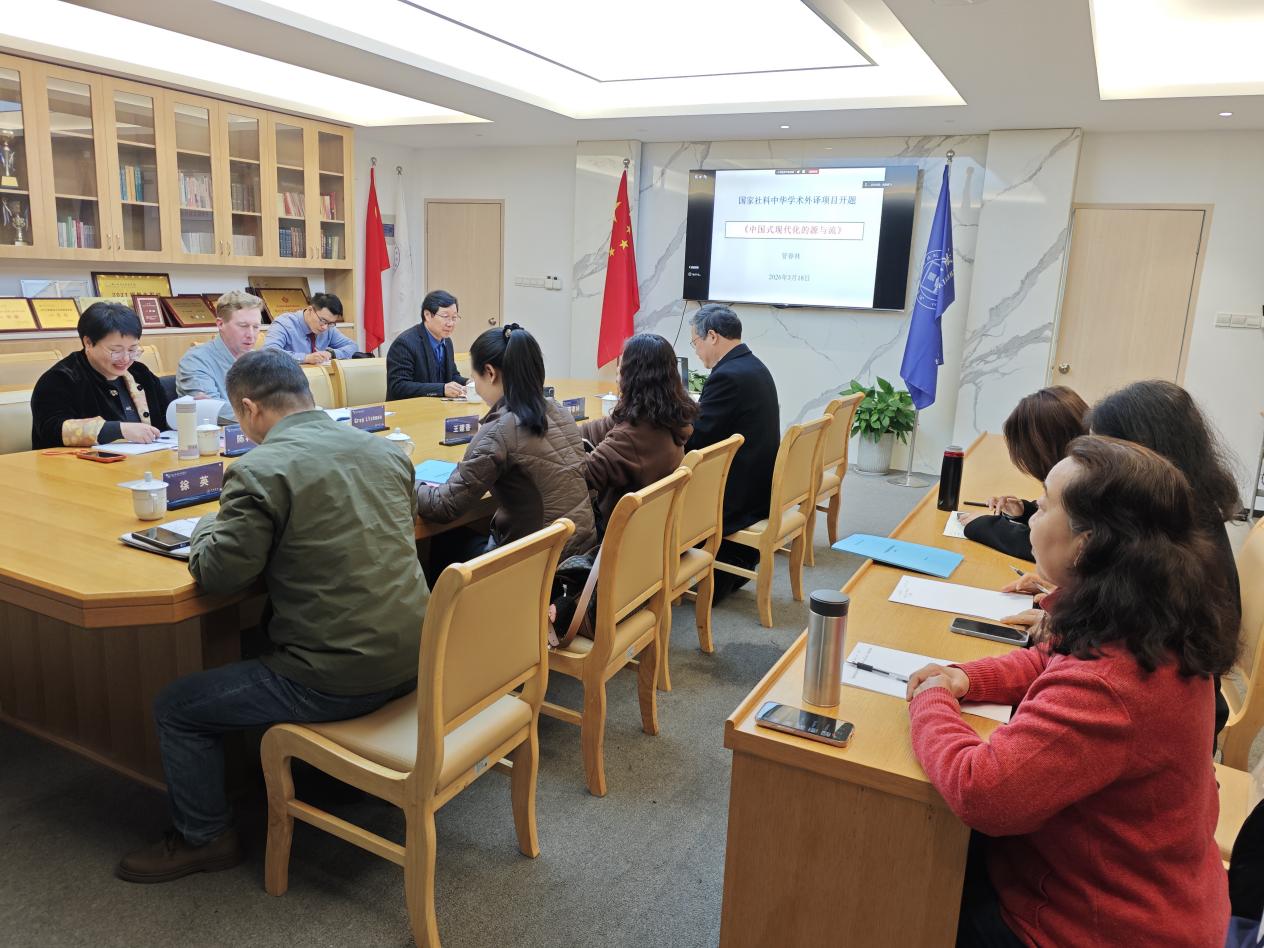 2026年3月18日下午,浙江越秀外国语学院英语学院在A208会议室召开了管春林教授立项的国家社科基金中华学术外译项目“《中国式现代化的源与流》(英文版)”的开题论证会。陈大亮教授、李贵苍教授、陈科芳教授、Greg Lishman担任论证会专家,学校科研处高楠副处长也特邀出席了会议,项目的重要合作方人民出版社的冯艳玲编辑,以及项目团队成员也通过线上方式参加了会议。论证会由浙江越秀外国语学院中外语言文化研究中心主任、首席专家李贵苍教授主持。