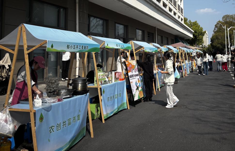 活动同步举办了农创客进高校“共富市集”,现场展销30余种绍兴乡村“土特产”和特色小吃,吸引了广大师生热情驻足参与。