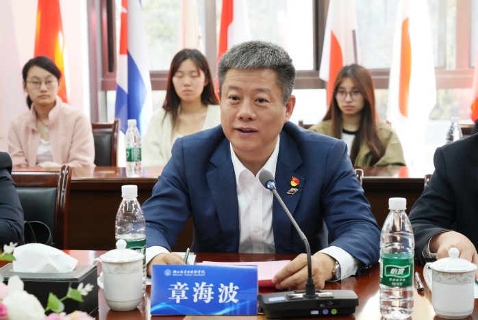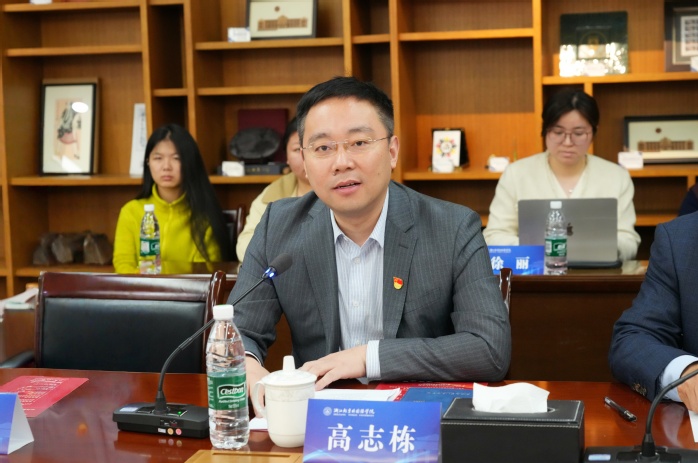 章海波书记代表国信证券浙江分公司致辞。他表示,越秀外国语学院办学特色鲜明、育人成果丰硕,为浙江对外开放与金融人才储备提供了有力支撑。此次共建是深化党建引领、推进产教融合的重要举措,对共育高素质金融人才、服务浙江经济高质量发展具有重要意义。双方将以党建为纽带,重点开展组织共建、实践育人、双向赋能三大合作,推动资源共享、优势互补,共同培养兼具专业能力与责任担当的金融人才。