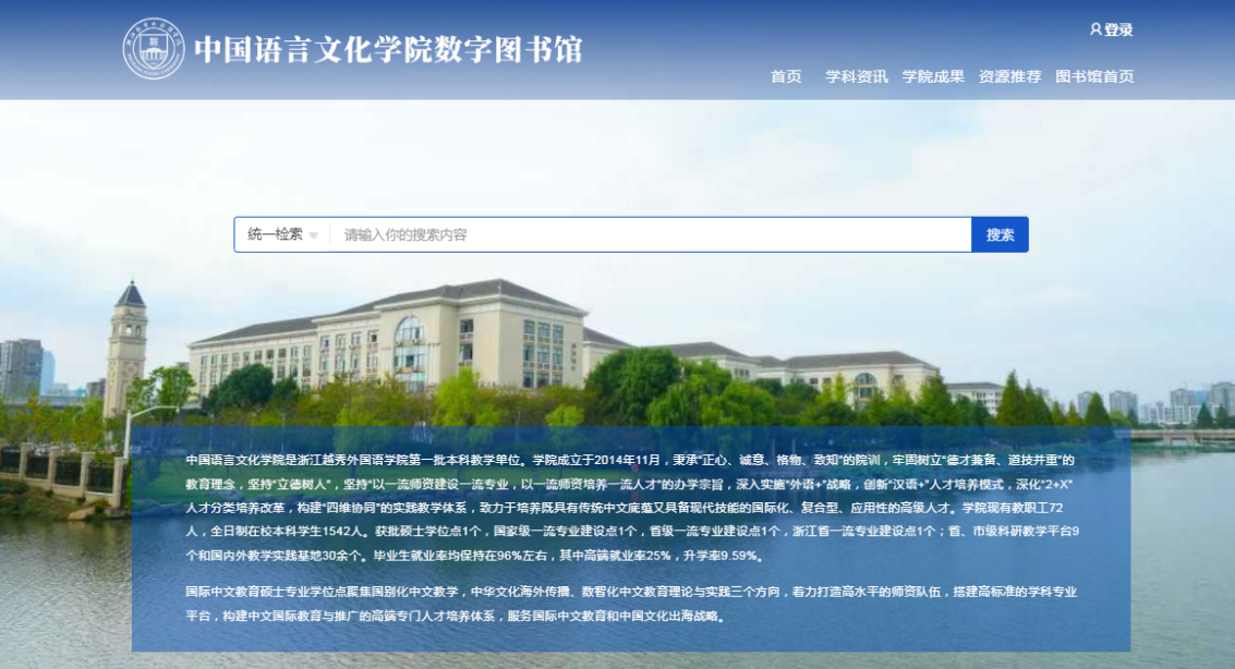中国语言文化学院作为学校人文社科重点院系,专业文献需求突出。图书馆前期深入调研师生需求,定制个性化建设方案,数字图书馆以 “资源精准化、服务个性化、使用便捷化” 为核心,搭建 “一体多模块” 框架,设置五大功能板块,精准对接学科专业与学术研究需要。