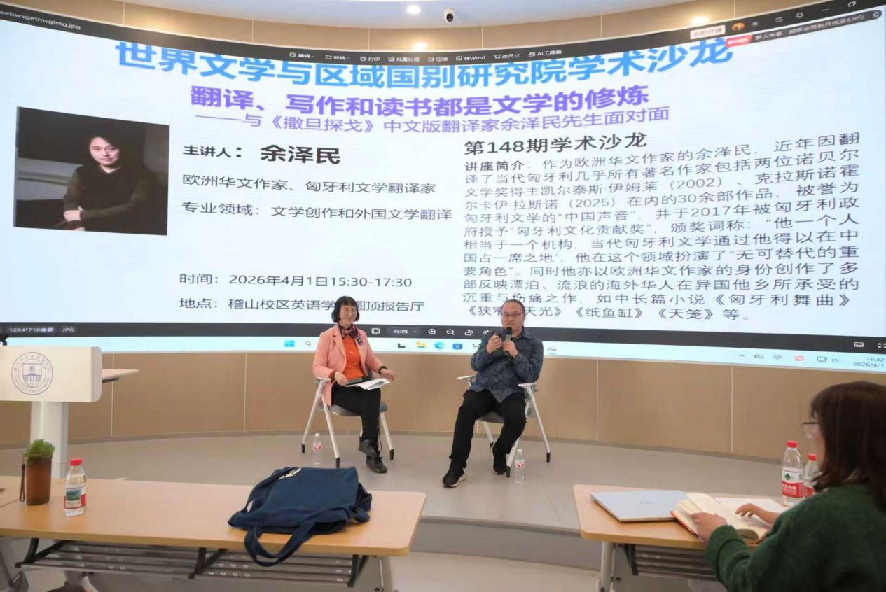 余泽民教授最后总结道,文学翻译不仅仅是一种职业,更是一种生活方式,优秀的文学翻译是基于对作品深度理解的相对独立创作。他勉励外语专业学生,既要筑牢语言功底,更要走出课堂、积淀阅历,保持对文学的感知力与共情力,在AI时代坚守文学翻译的初心。