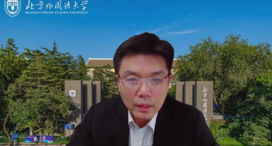 赵刚教授以线上视频形式致辞。他指出,人工智能时代外语学科面临深刻变革,期待与会专家以此次会议为平台,围绕外语学科建设、教学改革与区域国别研究深入交流,共同探索AI时代外语学科发展的新路径、新思路与新动力。