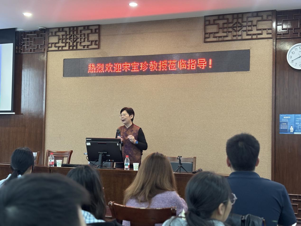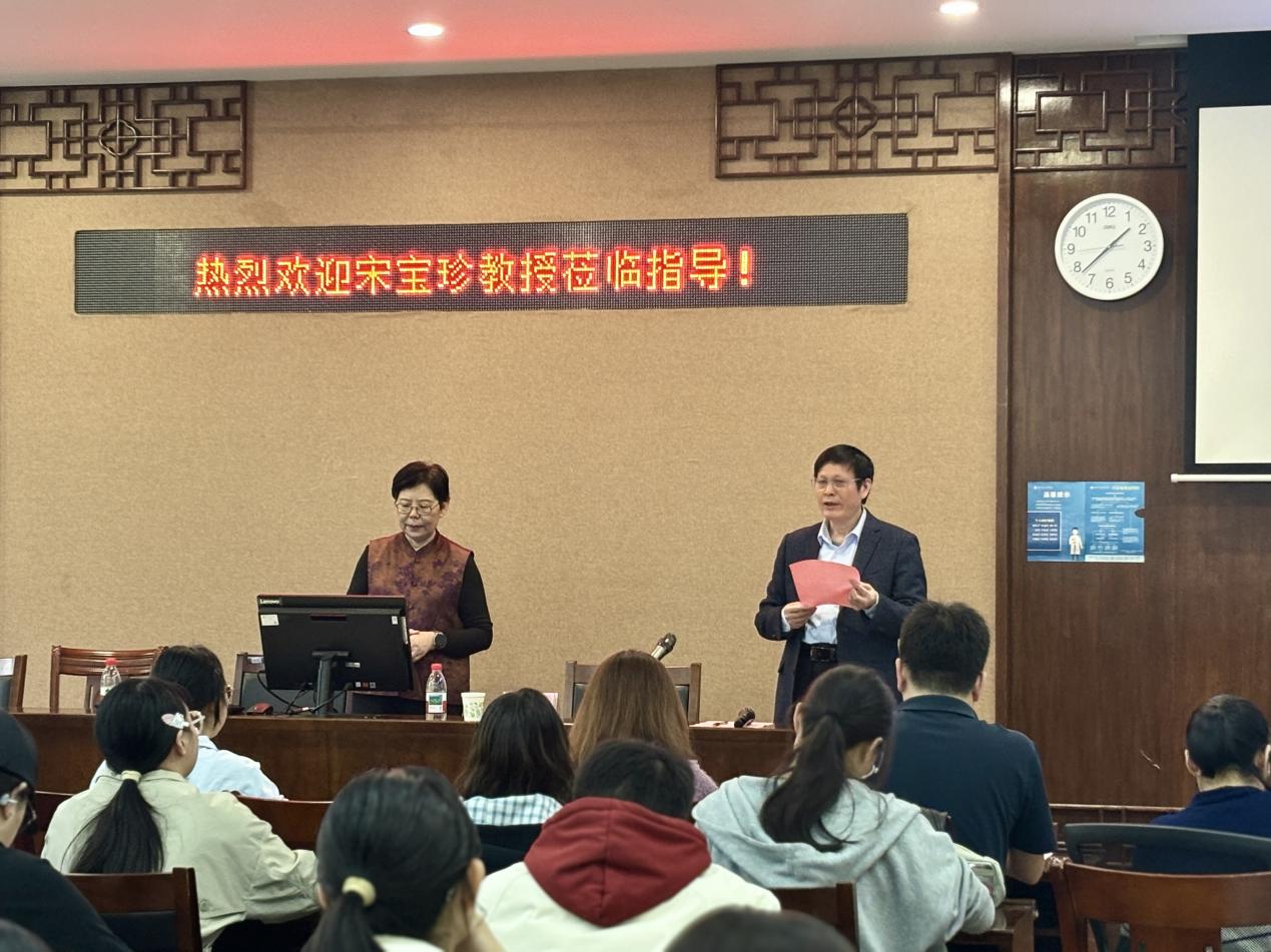 2026年4月11日,中国艺术研究院话剧研究所名誉所长、二级研究员宋宝珍教授应邀来我院讲学,讲座主题为“当代话剧创作的现状”。本次讲座在浙江越秀外国语学院镜湖校区3-305教室举行,由中国语言文化学院院长刘家思教授主持,100余名师生到场聆听。