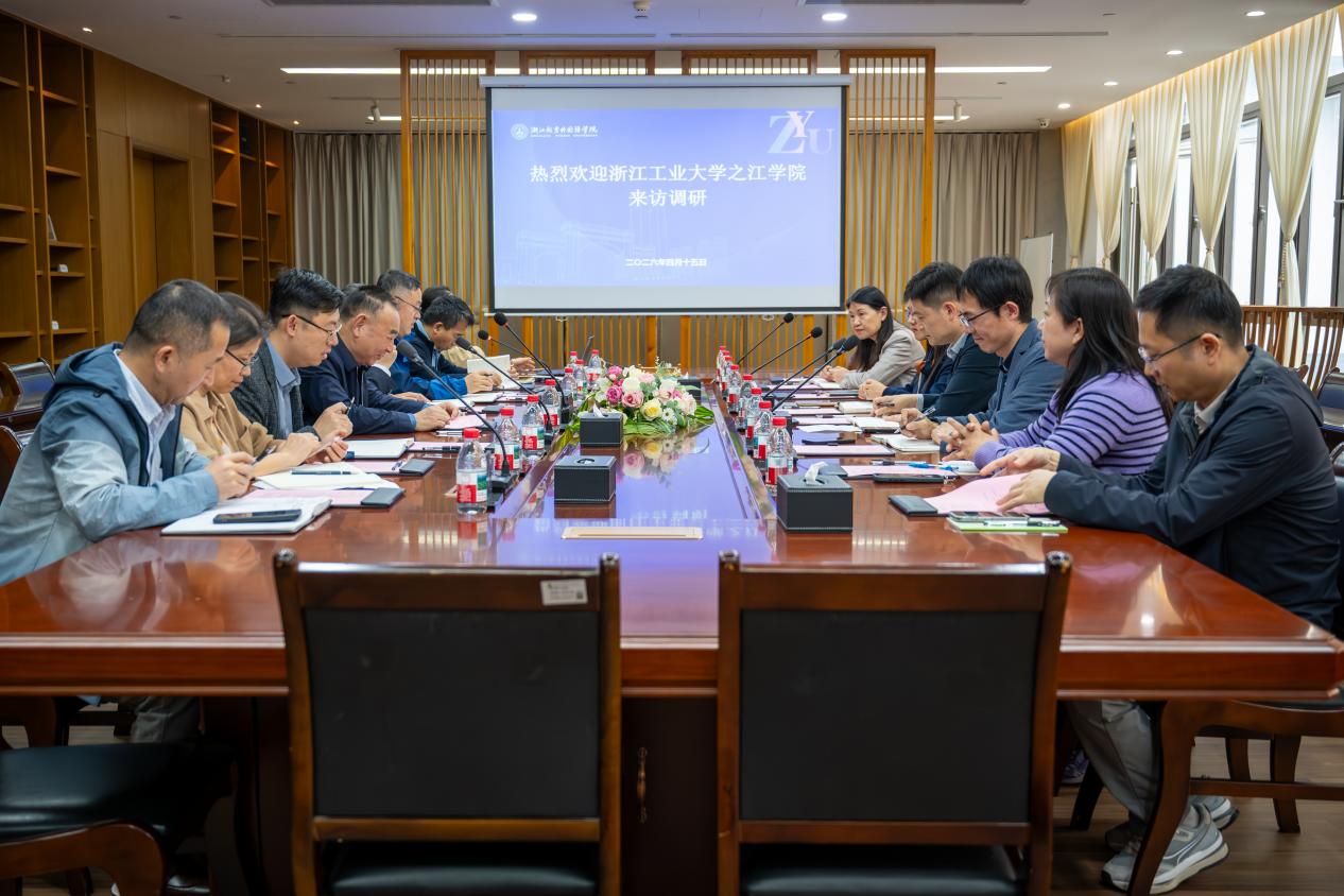 4月15日下午,浙江工业大学之江学院副院长王林祥、学术副院长王涛一行来我校调研交流。我校常务副校长郭杰、校长助理朱新福及相关职能部门、学院负责人出席座谈会,会议由郭杰主持。