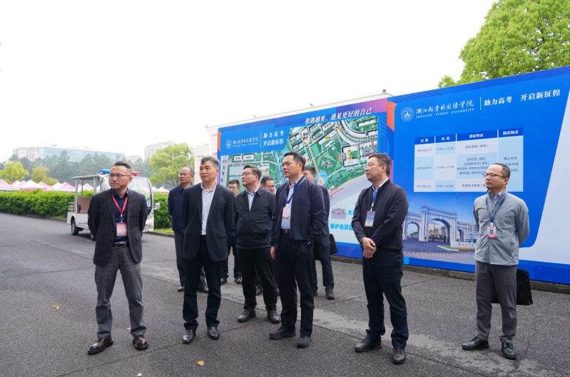 考试期间,浙江省教育厅党组成员、省教育考试院党委书记黄亮,高招一部主任卓奕源、机要秘书施任远,绍兴市教育局总督学朱伟明、绍兴市教育考试院院长成伟俊一行莅临我校检查指导。学校党委书记罗继红、副校长陈文涛、党委副书记高志栋陪同检查。检查组一行深入综合素质测试现场,实地巡查考试全流程组织实施情况,仔细查看考场环境布置、考场管理、服务保障、考务人员履职等情况。检查组对我校高职提前招生综合素质测试的筹备组织、规范实施和现场管理成效给予肯定,并对后续工作提出指导要求。