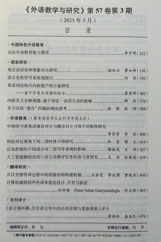 【应用外语学院】王金芝老师在权威期刊《外语教学与研究》发表最新研究成果