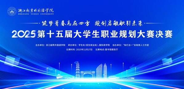 2025年11月27日下午,浙江越秀外国语学院第十五届大学生职业规划大赛决赛在镜湖校区图书馆报告厅圆满落下帷...