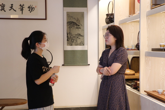 走进嵊州市大志然竹编厂,在企业负责人吕爽的带领下,实践团参观了竹编生产车间和竹编陈列厅,工人们有序的工作环境,摆放整齐的竹编工艺品,精细的竹编迭代归类让实践团成员们对竹编企业的发展和生产有了更深刻的认识。吕爽强调从以前具有观赏性的动物竹编到现代精致实用性的竹编产品是竹编不断适应时代再创造的过程。目前该厂的竹编分销商已遍布全国,产品也已远销欧美等国家。当被问及自己为何会从事这一传统行业,吕爽表示自己作为新一代竹编技艺的传承者、传播者,这是一种神圣的使命感。