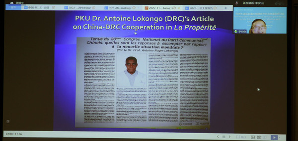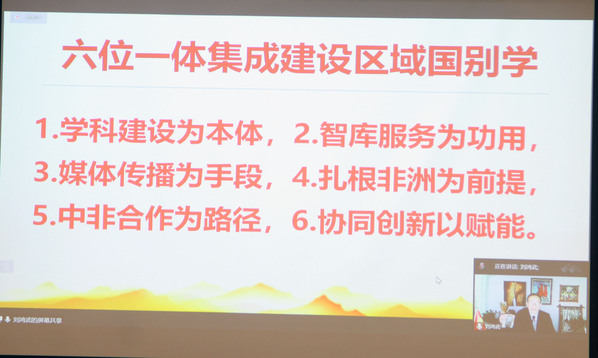 李安山教授总结了20世纪60年代以来中国不同对非研究机构的演变和四代非洲研究的学人,阐述了中国非洲研究的新主题、特点、优势和不足;刘鸿武教授提出了高校非洲区域国别研究与人才培养的新目标与新路径;彭青龙教授认为人类文明都不是孤立的体系,世界文化多样性既是世界现实多样性的客观存在,也是互学互鉴所依赖的基础和创新进步的关键因素;王战教授指出随着经济一体化的进程加速,非洲大陆自贸区既是机遇,也是挑战。以非洲大陆自贸区为依托,中非经贸合作将迈上新台阶;贺文萍研究员在发言中提议中方应抓住疫情带来的推动新业态发展的机遇,支持后疫情时期非洲大陆的一体化和“新基建”;安春英研究员以辽沈工业园为例,阐述了中国企业对乌干达投资的效应及若干思考; 孙树忠大使从卢旺达抗击疫情的不菲成果出发,仔细解读了该国和一些非洲国家政府的施政能力、发展模式和施政理念:王朝文社长从教育角度出发,提出中国与大湖地区应在教育合作的基础上促进双方的学术交流,并提出了切实可行地建议;布隆迪Clément BIGIRIMANA秘书长从语言的层面,阐述了人文与民族间的关系,并认为非洲大湖区各国在与中国建立良好的关系过程中应推广汉语的教学。