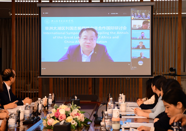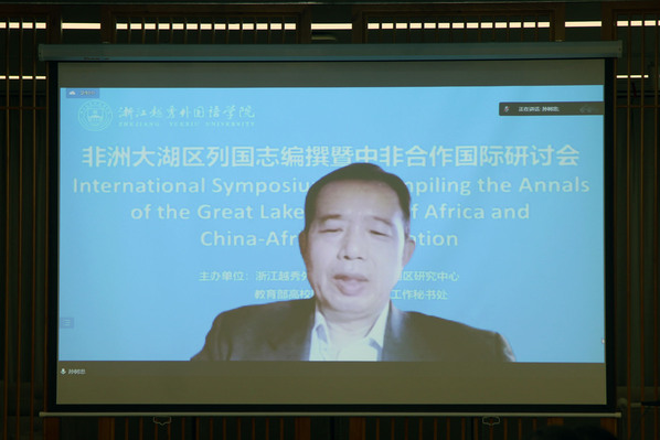 会议以线上和线下的方式同步进行,出席研讨会的有浙江省教育厅国际合作与交流处副处长蒋俊,中国非洲史研究会会长、北京大学国际关系学院李安山教授,教育部国别和区域研究工作秘书处主任、北京语言大学国别和区域研究院院长兼中东学院院长罗林教授,新华社《参考消息》原党委书记、社长王朝文,浙江师范大学非洲研究院院长刘鸿武教授,《上海交通大学学报》主编彭青龙教授,中国驻卢旺达原大使孙树忠,中国社科院《西亚非洲》执行主编安春英研究员,江苏省社科院研究员、《学海》杂志原主编胡传胜,中国社科院西亚非洲研究所贺文萍研究员,武汉大学法国研究中心和非洲研究中心主任王战教授,河海大学外国语学院院长、西非经济共同体研究中心主任张海榕教授。我校副理事长徐真华教授、校长叶兴国教授、常务副校长魏小琳教授、副校长葛金玲教授、非洲大湖区研究中心执行主任刘成富教授等参加了研讨会。魏小琳主持开幕式。