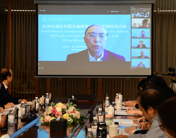 2022年11月11日,“非洲大湖区列国志编撰暨中非合作国际研讨会”在我校镜湖校区图书馆举行。围绕“非洲大湖区列国志编撰工作”和“对非合作”两大主题,与会领导和专家进行了深入研讨。研讨会由浙江越秀外国语学院非洲大湖区研究中心、教育部高校国别和区域研究工作秘书处主办,浙江越秀外国语学院西方语言学院、浙江越秀外国语学院《语言与文化论坛》承办,武汉大学非洲研究中心、河海大学西非经济共同体研究中心、浙江越秀外国语学院科研处协办。来自非洲与中国的60余名专家参与了研讨。国外嘉宾有来自布隆迪社会科学院执行秘书长Clément BIGIRIMANA,布隆迪大学英语教育系副教授Audace MBONYINGINGO,及布隆迪青年学者Etienne BANKUWIHA,刚果(布)青年学者Trystan ODZALA等。国内嘉宾汇聚了我国驻非洲大湖区国家大使、中国社会科学院专家,以及来自北京大学、上海交通大学、南京大学、浙江师范大学等高校的专家学者。