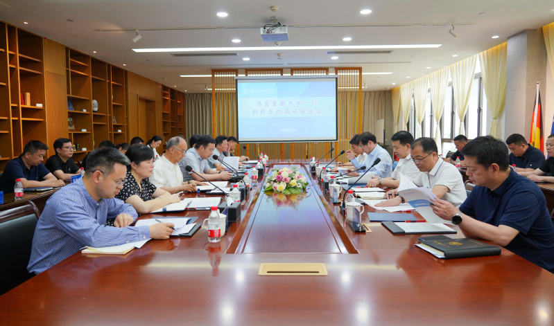 高志栋汇报了学校相关工作情况。学校办公室、宣传统战部、保卫处、国际合作交流处、学工部、图书馆等相关负责人、部分二级党委书记参加调研活动。