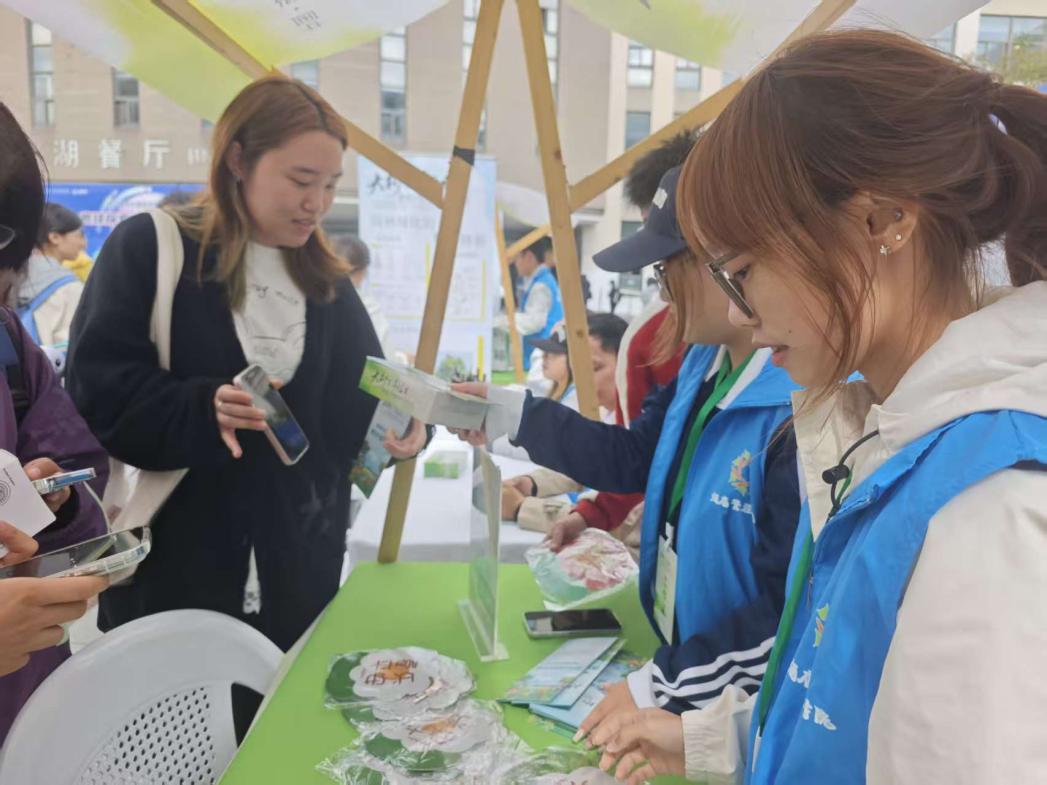 在活动现场,学院党员志愿者充分发挥先锋模范作用,积极配合主办方完成各项服务工作。在绿化知识问答区,志愿者们耐心引导师生参与答题,并细致讲解本地树种特点和养护知识;在花盆涂鸦区,他们协助分发材料、维持秩序,鼓励参与者发挥创意;在礼品发放区,志愿者们有序组织扫码关注、分发定制餐巾纸和宣传册,并协助开展抽奖环节,将盲盒种子、绿植积木等礼品准确送达参与者手中。