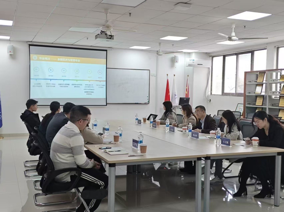 2025年11月11日,浙江理工大学科学与艺术学院人文与国际交流学院、马克思主义学院宫富院长一行来我院进行考察交流。浙江越秀外国语学院教务处处长兼酒店管理学院院长尚云峰、党委书记吴伟英、副院长钱芳斌携会展经济与管理系主任陆炎、酒店管理专业系副主任吴伊超一行热情接待,双方展开了一场富有成效的座谈会。