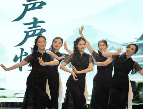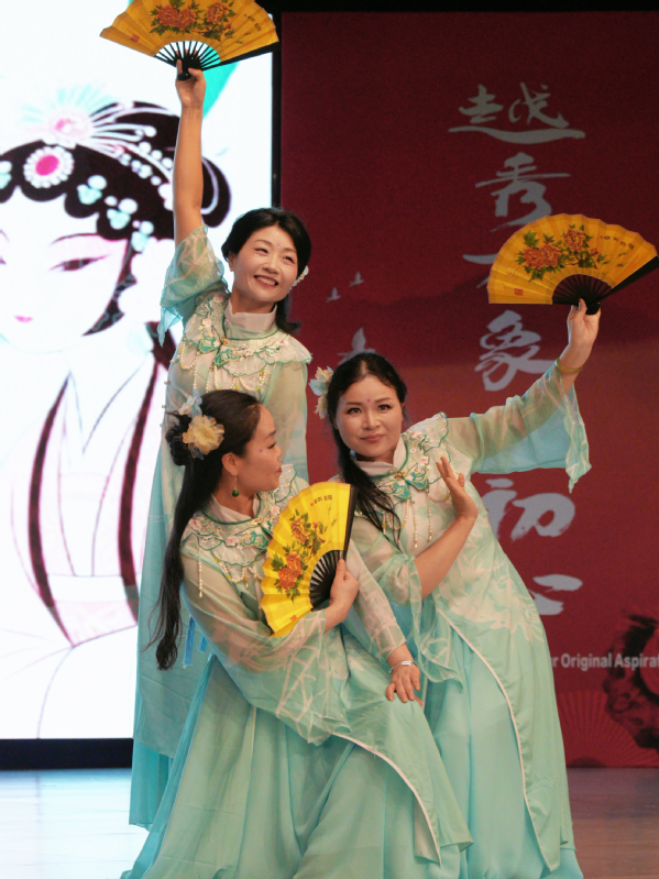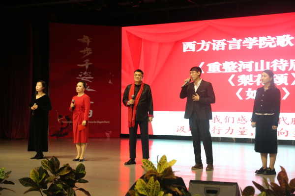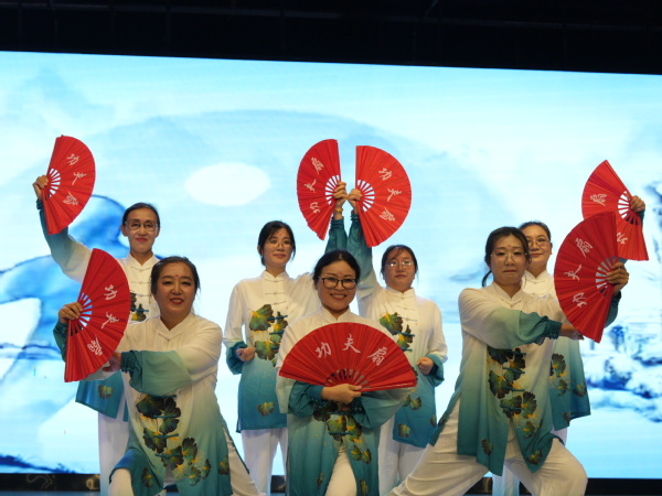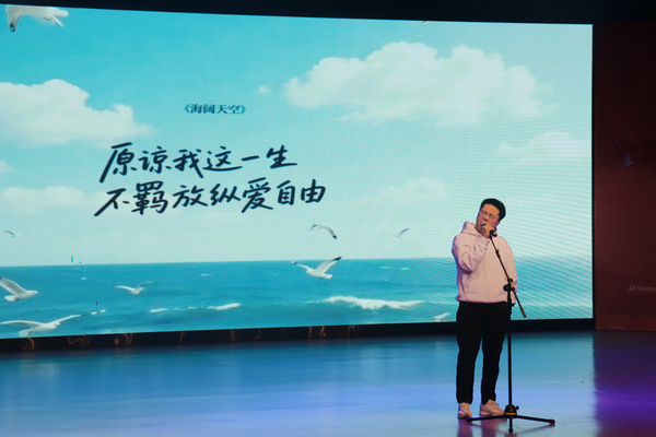 网络传播学院分工会邢文江老师演唱的《海阔天空》堪称全场情感高潮,旋律从平缓到激昂层层递进,深情嗓音既唱出对理想的执着,更呼应了越秀人办学路上勇毅前行的精神内核,引发全场师生跟唱,掌声经久不息,成为“越秀万象映初心”的生动注脚;舞蹈《戏文说》中,老师们身着精致戏服,将戏曲程式与现代舞灵动结合,水袖翻飞间尽展传统艺术韵味;武术《中国功夫·太极扇》以刚劲动作、恢宏编排,彰显中华武术的磅礴气势与文化底蕴。