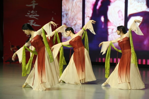 伴随着网络传播学院逸韵舞社《美人关》的灵动舞姿,“舞林大会”正式拉开帷幕。舞者们刚柔并济的动作、整齐划一的编排,既诠释了“舞步千姿”的鲜活张力,更流淌着高雅气韵,瞬间点燃全场氛围。