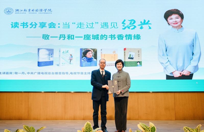 12月5日,“当‘走过’遇见绍兴:敬一丹和一座城的书香情缘”读书分享会在浙江越秀外国语学院镜湖校区图书馆报告厅隆重举行。学校特聘教授费君清、常务副校长魏小琳、党委副书记兼纪委书记高志栋,以及各部处、各学院师生代表300余人齐聚一堂,与中央广播电视总台播音指导、电视节目主持人敬一丹共赴一场跨越时空的心灵对话。