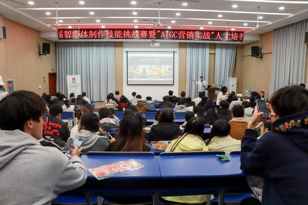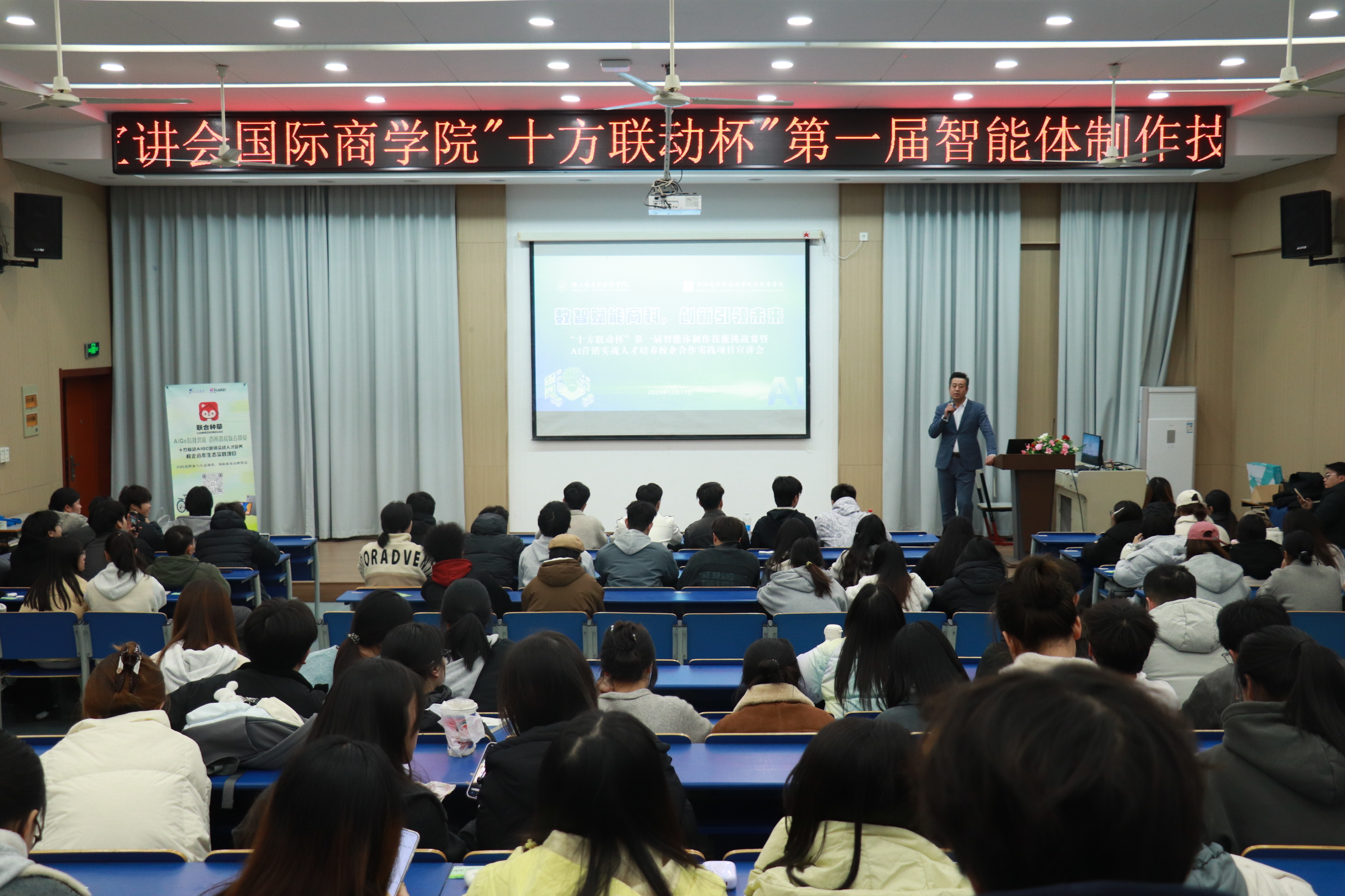 2025年12月17-18日,浙江越秀外国语学院国际商学院“十方联动杯”第一届智能体制作技能挑战赛暨AI营销实战人才培养校企合作实践项目宣讲会在镜湖校区圆满举办。活动以“数智赋能商科,创新引领未来”为主题,通过两天的主题宣讲、实战授课与互动演练,搭建起“产学协同、以赛促学”的优质平台,引导青年学子主动拥抱AI浪潮,深化校企人才联合培养模式,吸引了全校众多对智能技术与商业创新感兴趣的师生参与。
