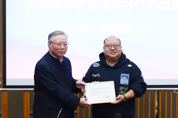 当天下午,全球修辞学会召开理事会,各分会会长、副会长及相关代表系统汇报年度工作进展,并研讨2026年发展规划。会议审议通过了学会学术共同体建设与学科整合方案,高效完成了年度总结、未来规划、并就多项人事任命形成决定。会上还对国际合作与学术共同体建设中的突出贡献进行表彰,浙江越秀外国语学院网络传播学院获颁“国际合作杰出贡献奖”。