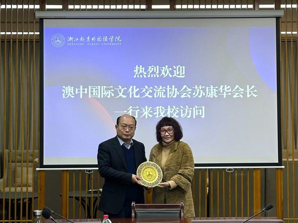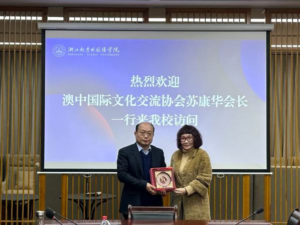 12月26日下午,澳中国际文化交流协会会长苏康华一行访问我校,校长雍和明热情接待会长一行,双方围绕教育合作、师生交流、联合培养等项目展开深入讨论。国际合作交流处处长孔勇、国际教育服务中心主任俞晓凡、英语学院院长王建香、国际商学院院长李晓明、数字贸易学院院长单胜江、国际合作交流处副处长余玲,以及留学生教育学院副院长王佳平参加会谈。