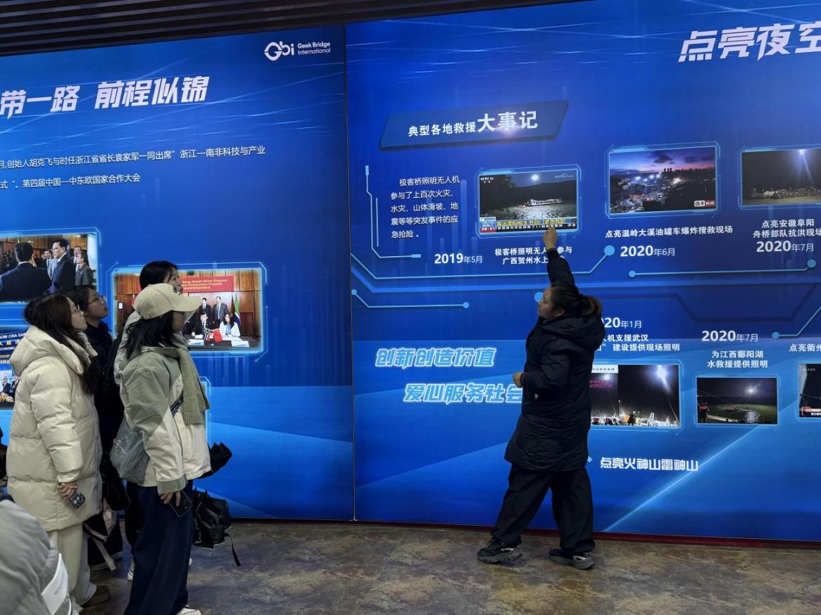 通过这次实践教学活动,学生深刻体会到科技自立自强不是口号,而是体现在每一颗螺丝钉、每一行代码中的国家意志,极客桥团队十年磨一剑的坚守精神更令大家动容,纷纷表示作为新时代青年,要将个人发展融入国家创新大局。此次极客桥之行是马克思主义学院“感知浙江”思政课社会实践系列品牌活动的重要组成部分,也是学院“理论+实践”教学改革的关键一环,学院通过链接地方优质资源,构建起“课堂-社会-企业”协同育人模式,带领学生走进真实企业场景,让思政课程“活”起来,不仅让学生真切感悟到民族精神在当代科技工作者身上的传承与发扬,深化了对民营经济在高质量发展中作用的认识,更有效激发了大家科技报国的使命感,为培养担当民族复兴大任的时代新人提供了鲜活样本。未来,学院将持续推进校企联动,引导学生在浙江“勇当先行者”的实践中书写青春答卷。