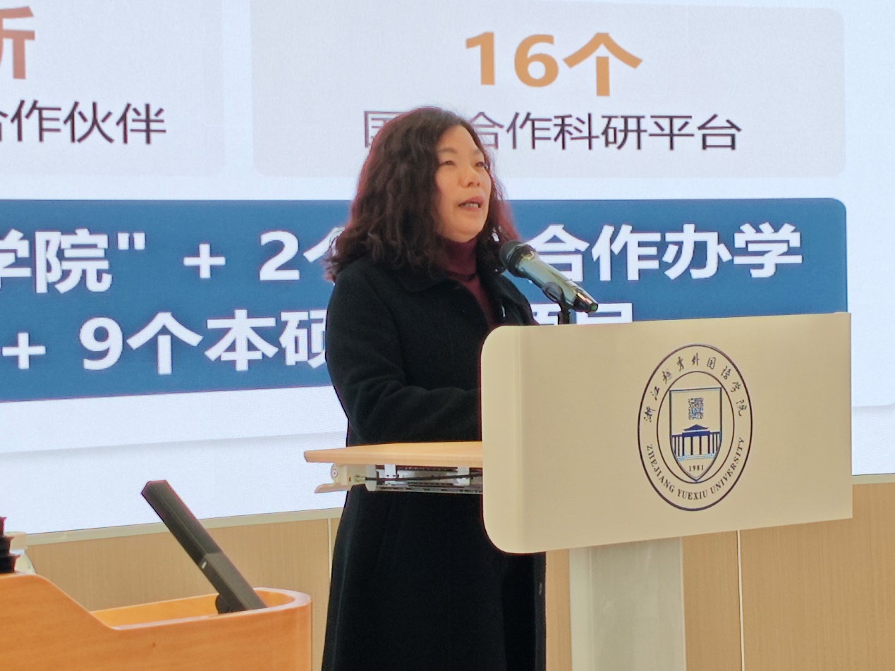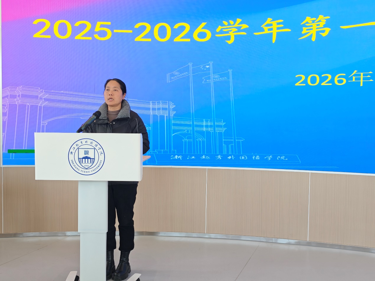 随后,王建香院长全面总结2025年学院在教学工作与人才培养、科研与学术交流、学生工作三方面的成绩,向全体教师的辛勤付出致以感谢。她立足学校培养应用型、融通型、国际化人才的目标,直指学院现存的师资结构待优化、国际化建设薄弱、科研行动力不足、AI时代教学教研转型滞后四大问题。