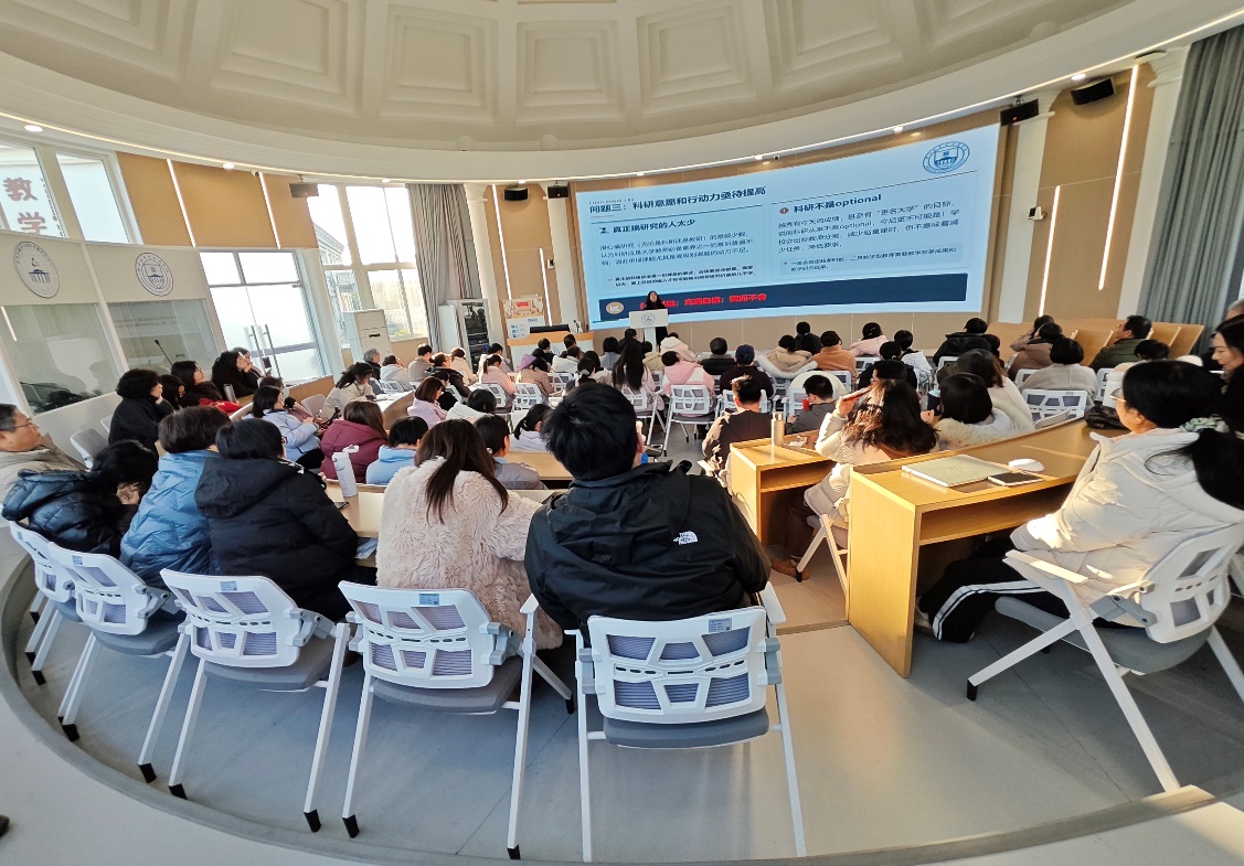 围绕学校“十五五”规划及中长期发展布局,王院长解读学校更名大学核心指标、专业与学科建设等关键内容,强调学院与学校发展休戚与共,鼓励教师对标目标精准发力。她明确英语学院2026年五大重点任务:推进“英语+”“AI+”“+思政”深度融合并实现课程全覆盖、组建科研教学攻坚团队、优化专业方向并申报新专业、创建微专业与现代产业学院、突破国际科研合作平台建设。