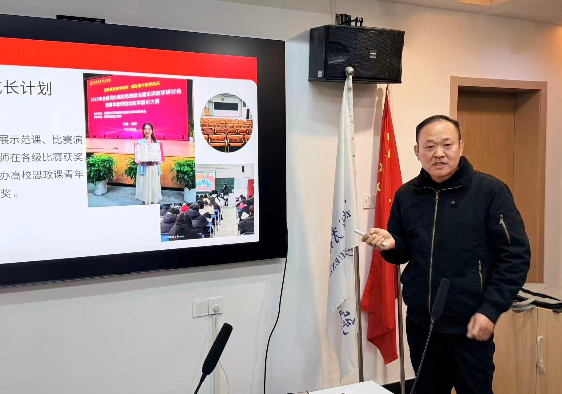随后,“中国近现代史纲要”教研室主任韩宏伟老师围绕教研室建设,从教研机制完善、团队协作提升、教学资源整合等方面,介绍了富有成效的实践经验,为各教研室建设进一步提质增效提供了有益借鉴。