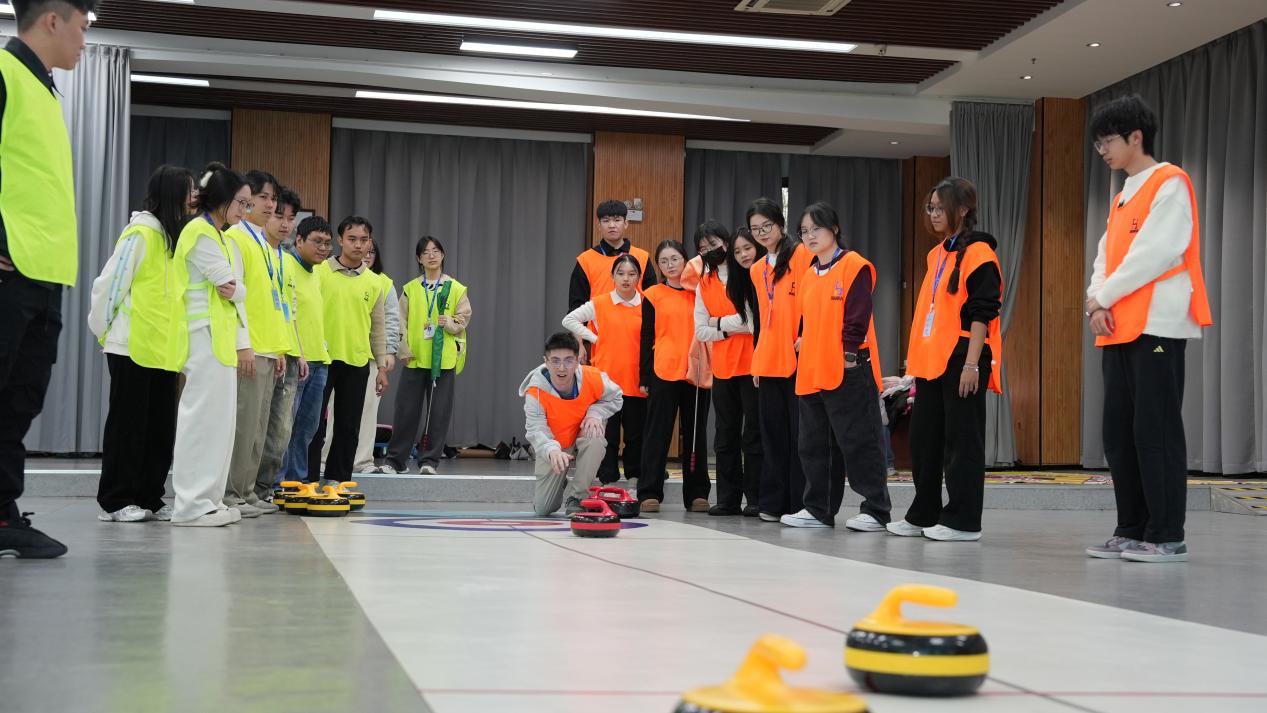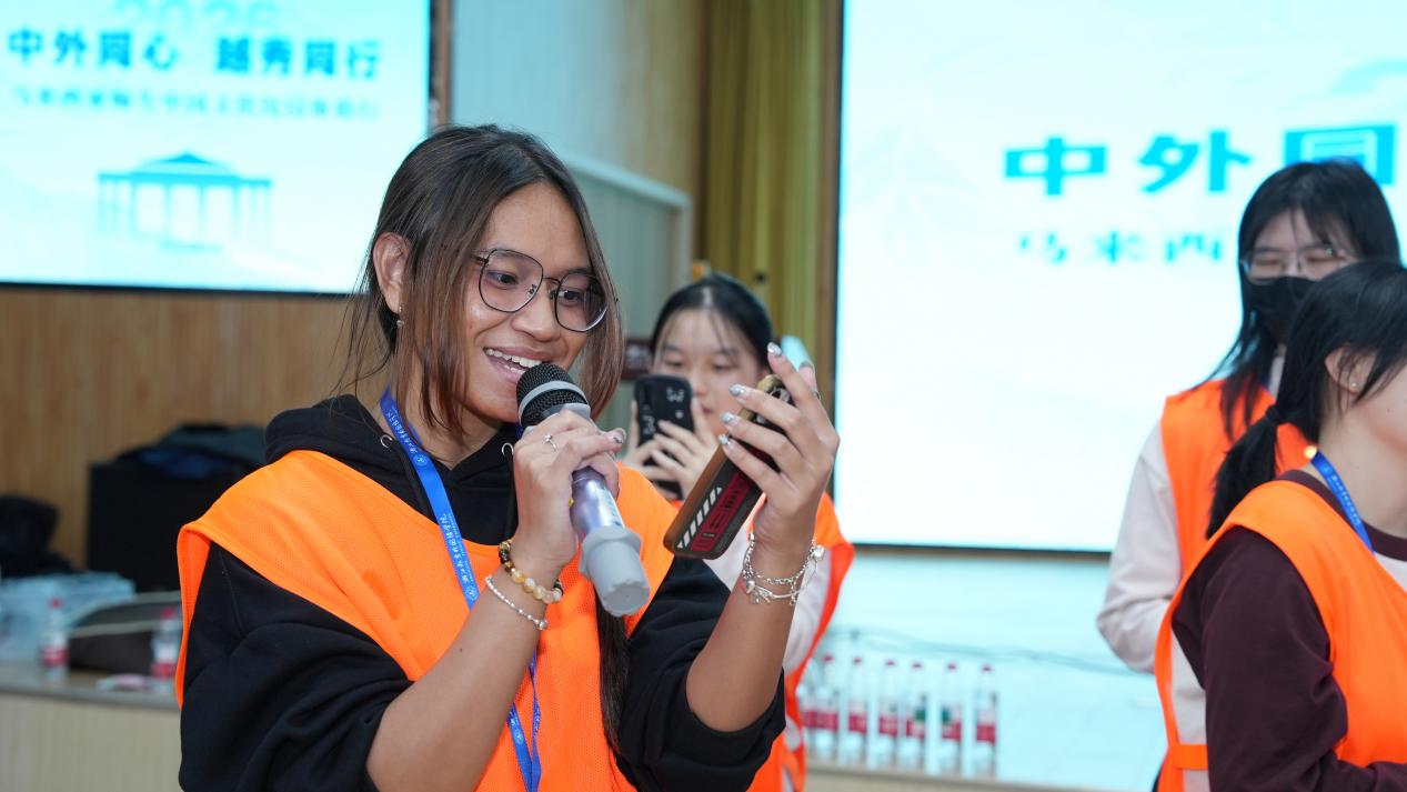 开营破冰活动在欢声笑语中启幕。砂拉越科技大学的同学们与学院志愿者混合编组,共同构思队名、设计口号,绘制团队旗帜,旱地冰壶和趣味大富翁游戏更是将现场氛围推向顶点。