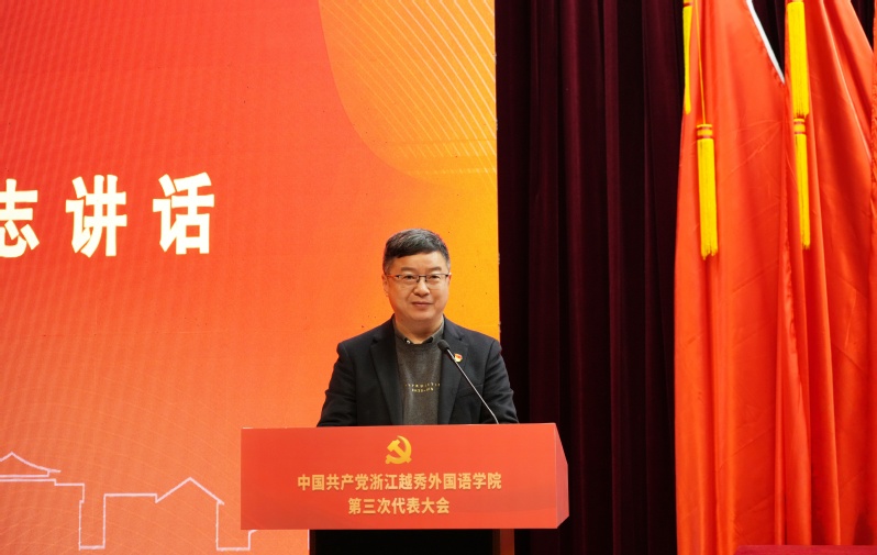 于军代表绍兴市教育局党委对大会召开表示热烈祝贺,对学校改革发展取得的成绩给予充分肯定,对今后学校工作提出希望。他强调,要坚持以党的二十大和二十届历次全会精神为指导,深刻领悟“两个确立”的决定性意义,做到“两个维护”,坚持政治引领、思想铸魂,牢牢把握社会主义办学方向,全面落实立德树人根本任务,完善三全育人格局,建强大思政工作体系,培养担当民族复兴大任的时代新人、心系绍兴发展的社会栋梁。要彰显国际化、应用型办学特色,聚焦绍兴做深“教科人”一体发展、加快建设产城人文融合发展共富示范市的发展战略,以高质量党建引领学校治理提效和事业发展,深化产教融合、科教融汇,全力推进硕士学位授予单位建设,把学校打造成为绍兴开放形象和文化底蕴的展示窗口、服务地方发展的人才培养基地和学科赋能阵地,为绍兴建设高教强市、人才强市,推进产城人文融合发展的共富示范市建设贡献更大力量。