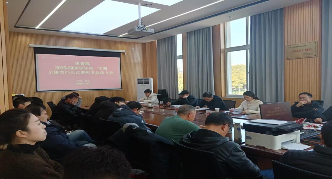 1月9日,2025年度体育部工作总结大会在稽山校区风江体育馆二楼会议室举行。校党委副书记、纪委书记高志栋听取汇报并发表讲话,体育部主任张岚主持会议并作2025年工作总结与2026年工作计划报告,教研室、竞训、科研、体质健康及宣传等中心主任分别就各自领域工作作了简要汇报。